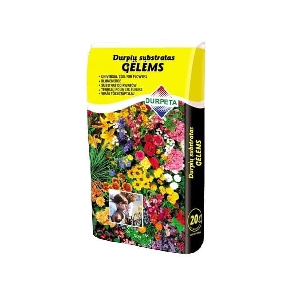 Durpių substratas lauko gėlėms/kambarinėms gėlėms Durpeta, 20 l – skirtas kambarinėms, balkono ir lauko gėlėms. Tinka sodinimui ir persodinimui visoje Lietuvoje.